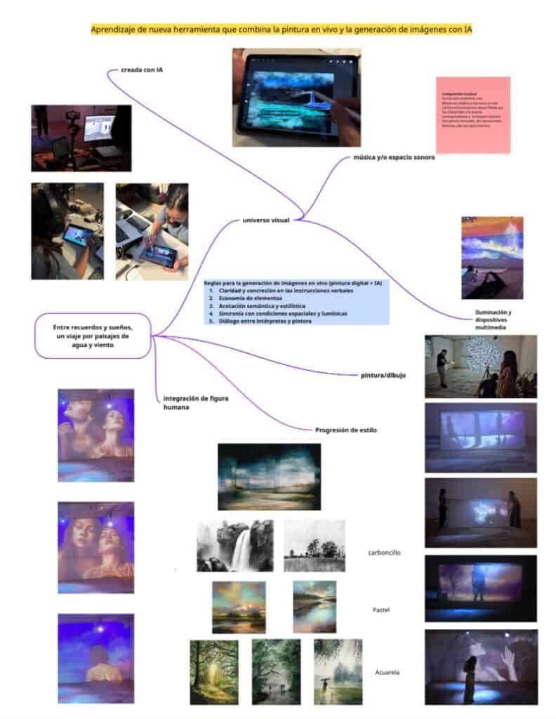 La pieza busca expandir la categoría de danza a través de un enfoque transdisciplinar que entrelaza prácticas escénicas, visuales, sonoras y tecnológicas. En un paisaje escénico imaginario, convergen danza, teatro, pintura y multimedia en un diálogo vivo, poético y sensorial. La escena se construye como un organismo donde los lenguajes se entretejen en tiempo real, detonados por la presencia de lxs intérpretes, quienes actúan como catalizadores de una experiencia inmersiva, emocional y reflexiva.
